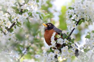 In the US the Robin is a sign of Spring. “The first Robin” is alway a joyous and exciting sight. They are depicted on flowering branches or fruiting bushes. They are a sign that Winter is over.
